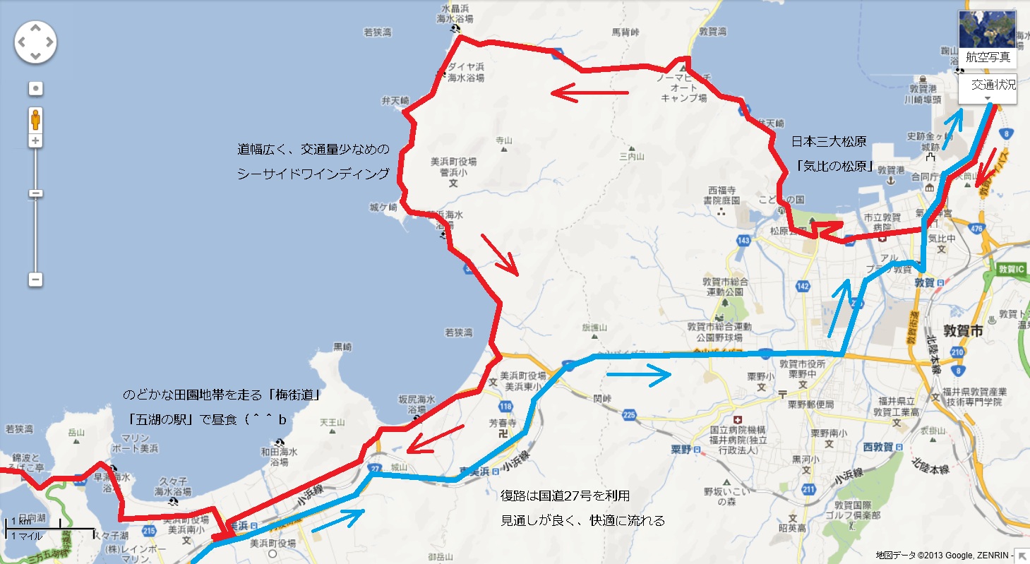 敦賀湾沿いの海岸線を走り、敦賀湾を横断する峠を越える。