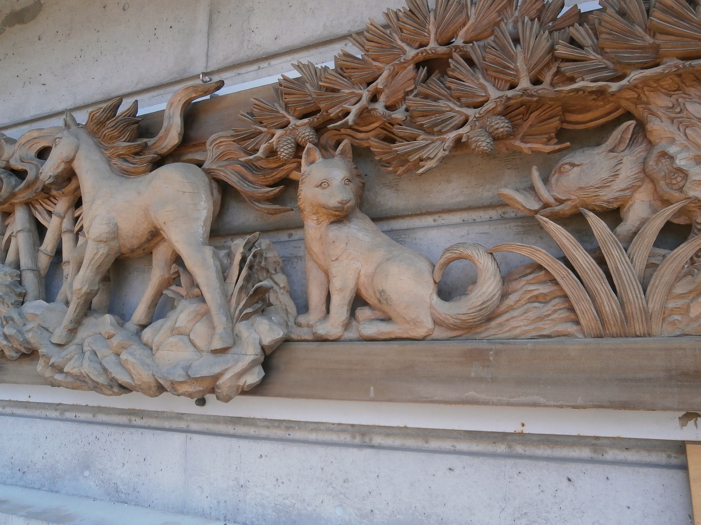 すごい・・・見事な木彫りだが防腐処理が激しく気になったw