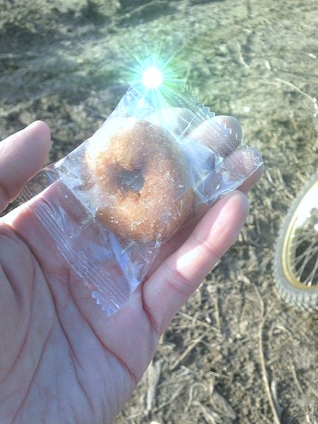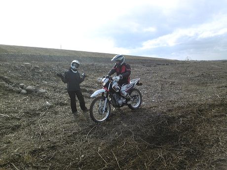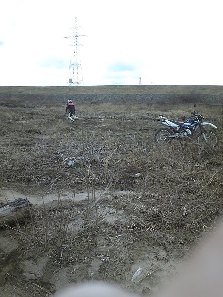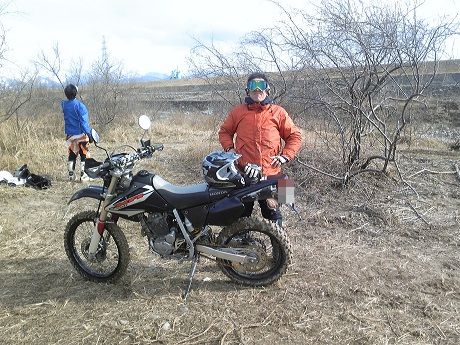 シュウッーさん、M・Fatherさん、M・Jr.さんと4人で喋っていたら、土手を走る50ccのオフ車が目に入った。