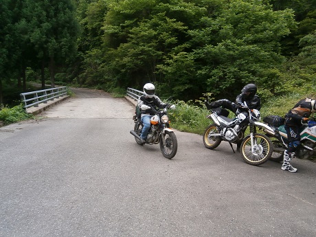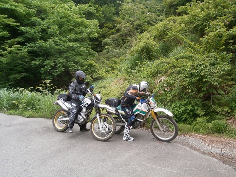 Kめいさんとゆうたさん、新旧SEROWも仲良く到着。