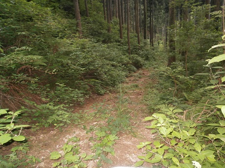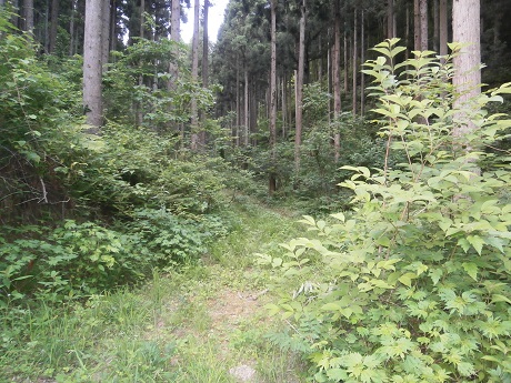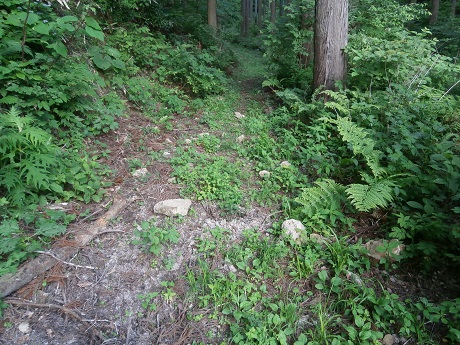 草が生い茂っているが確かに道はある。(どくだみ草が臭い><)