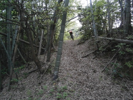 途中から急坂になり、笹の葉さらさらと相まって登りにくいったらありゃしないw