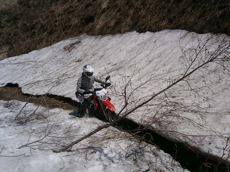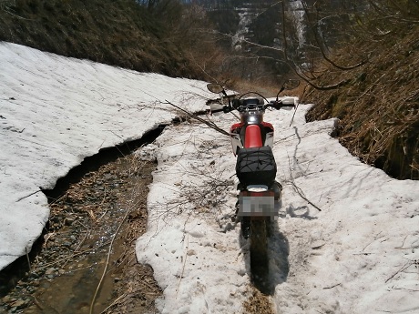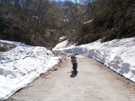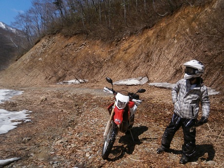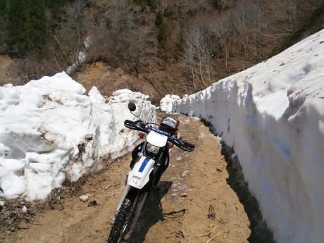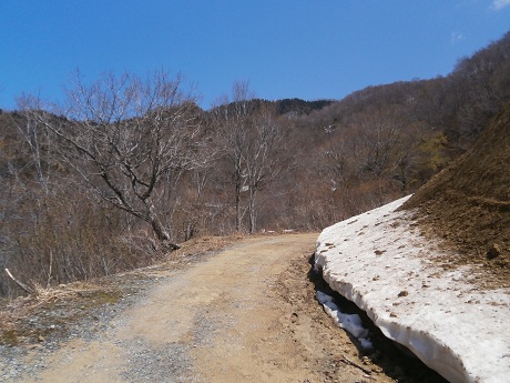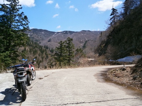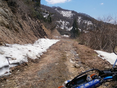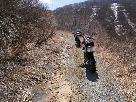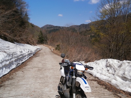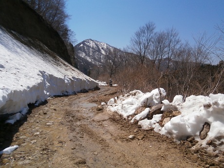 前半は舗装、後半はダートとなるこの林道、路上に雪がなく全線クリア!