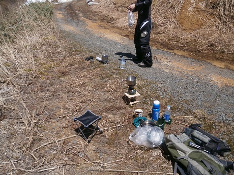 お互いコンパクトストーブを持って来ているので湯沸かし。