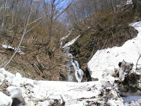 雪解け水だろうか、滝が結構な勢いで流れていた。