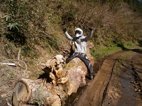 巨大な倒木を発見したとたん、ロデオボーイがダッシュ!