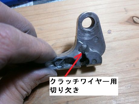 レバーの裏側にあるクラッチワイヤーのタイコ穴。