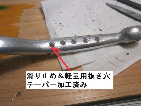 Φ3.3の穴を5つ、滑り止め&軽量化が目的。