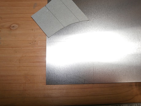 形取った厚紙でアルミをケガく(と言っても鉛筆でなぞるだけw)