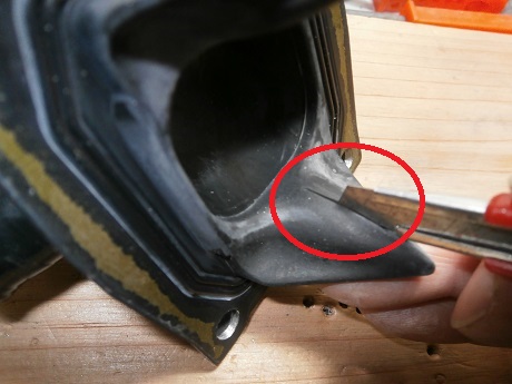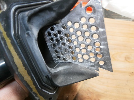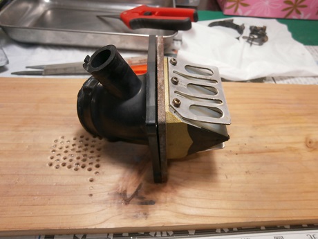 形取った厚紙を利用して、インテークマニフォールド内をケガく。