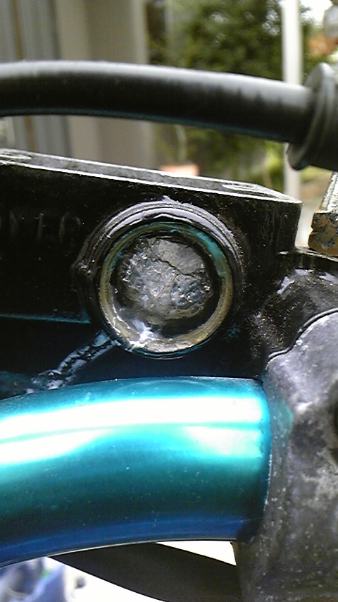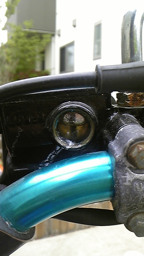 そして限界に近づいていたフロントマスターシリンダーの窓から、ついにブレーキフルードが染み出していた。