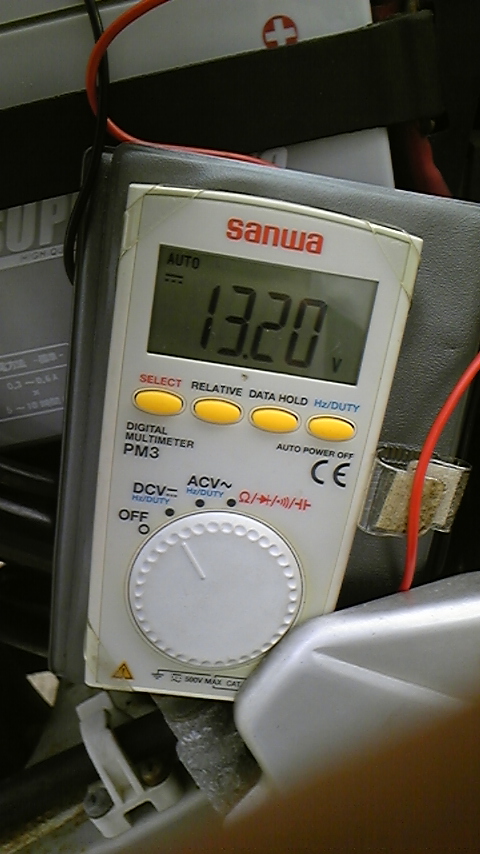 アイドリング状態とアクセルオンで電圧を測定すると、13V~14Vで推移。