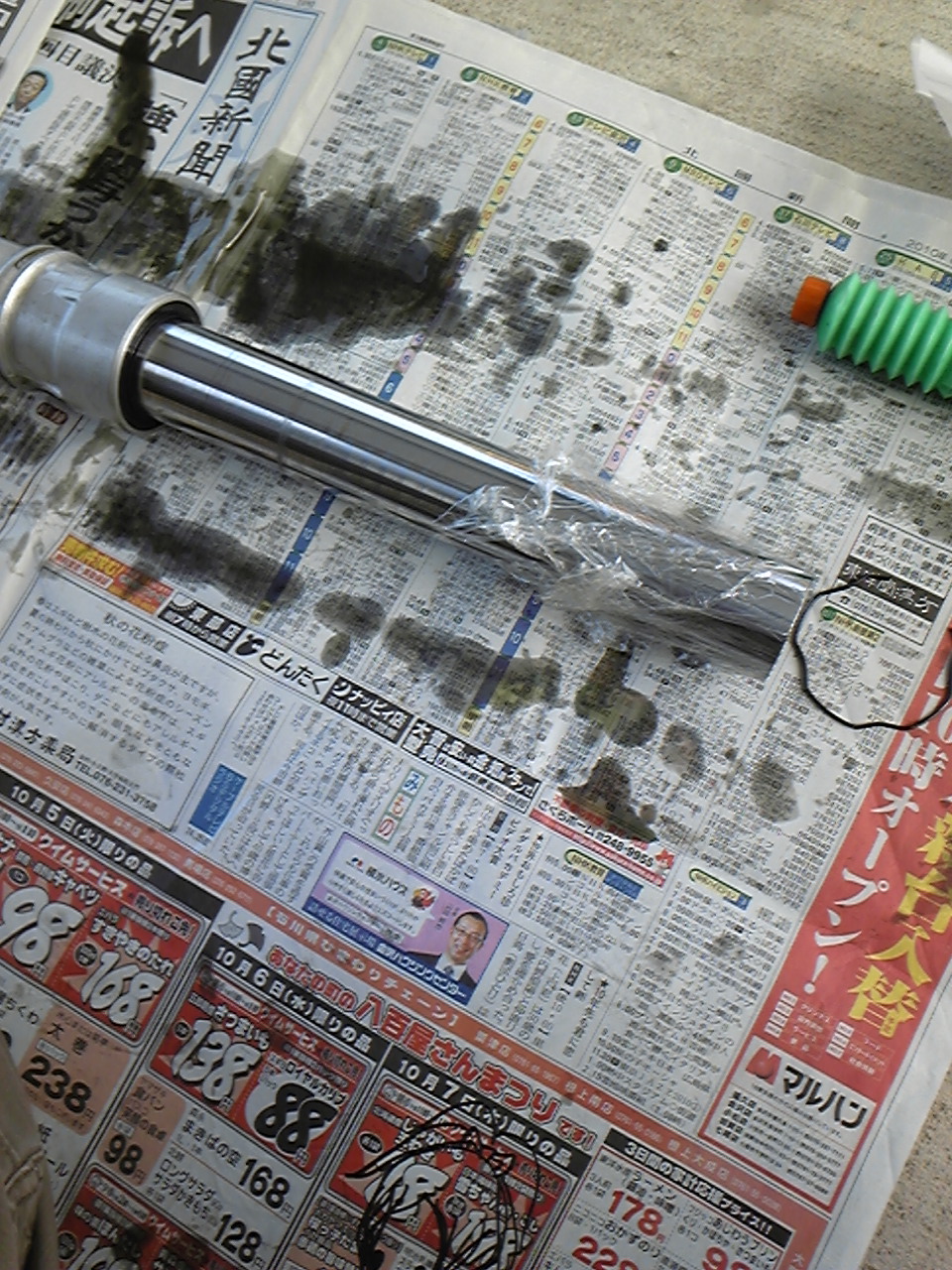 右フォークは、オイルが漏れているので、オイルシールとオイル交換。