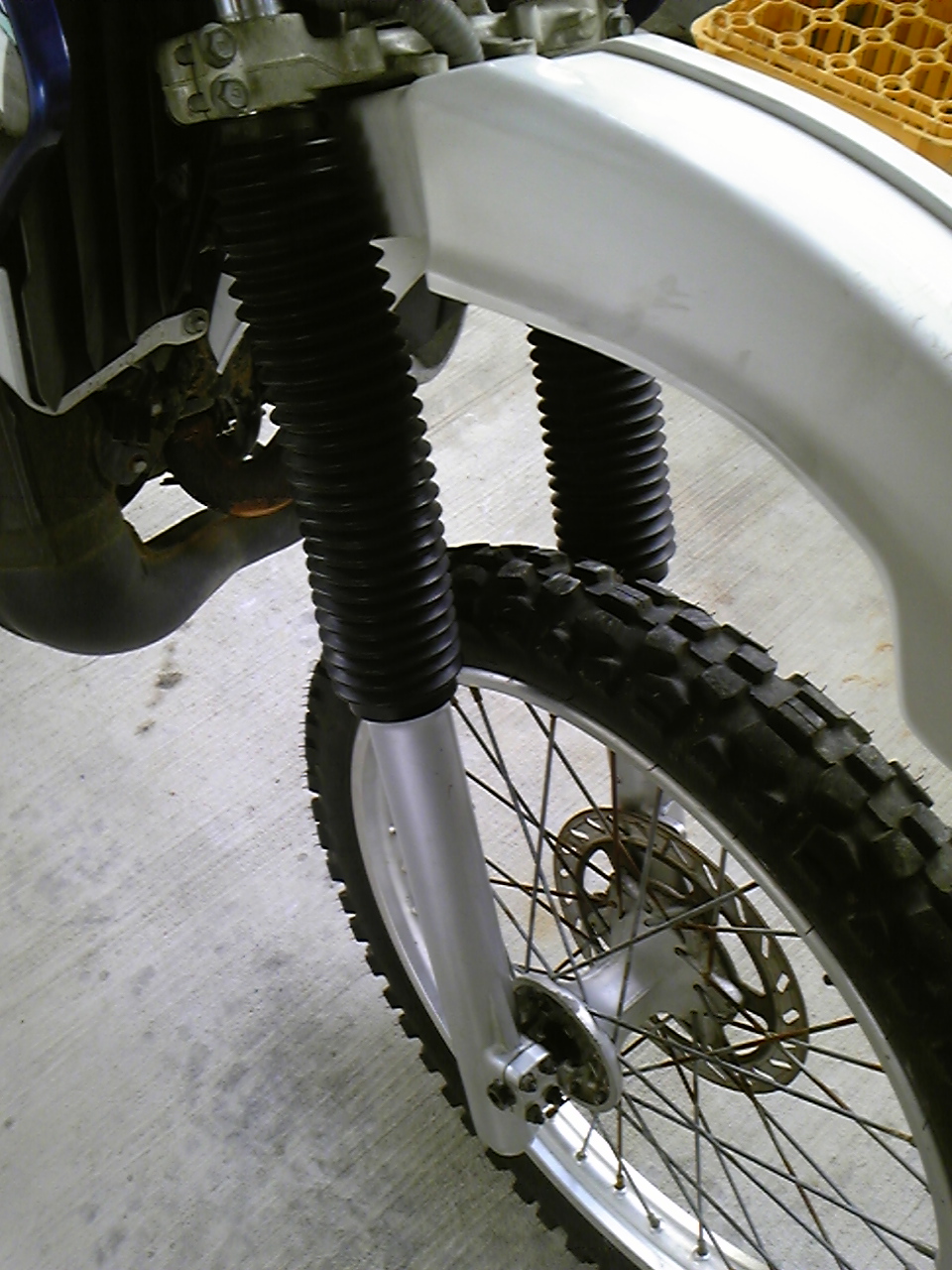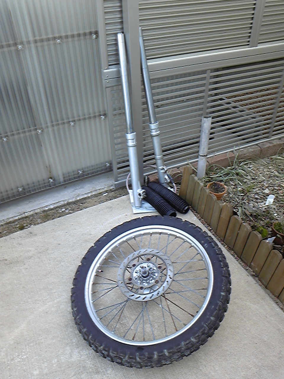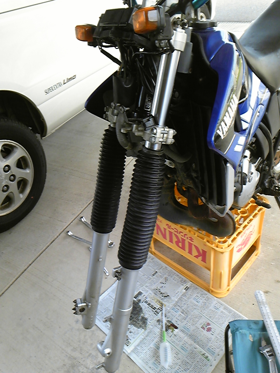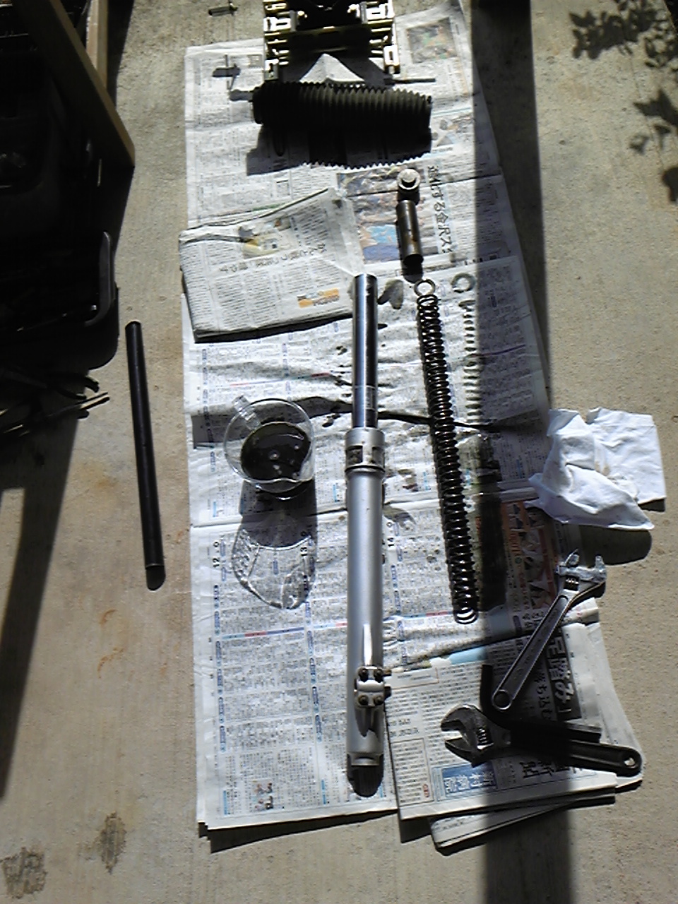 日差しも暖かく絶好のメンテ日和だったので、LANZAのフロントフォークのメンテをした。