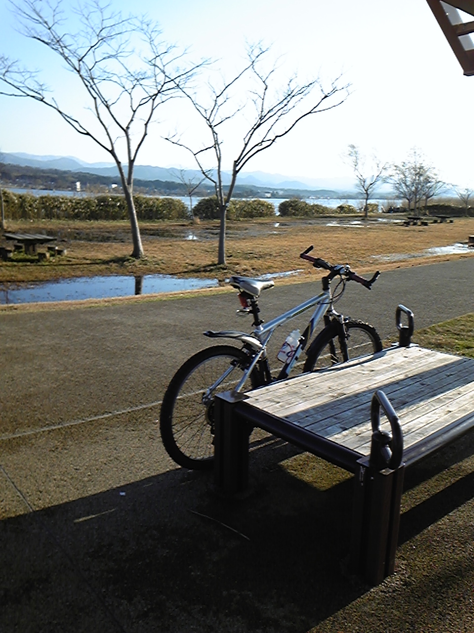 車にちゃりを載せ、小松市の木場潟公園に移動。