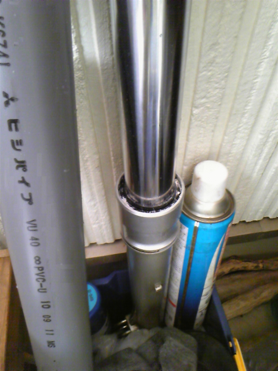 サランラップを取り除き、塩ビパイプでオイルシールを打ち込み直す。