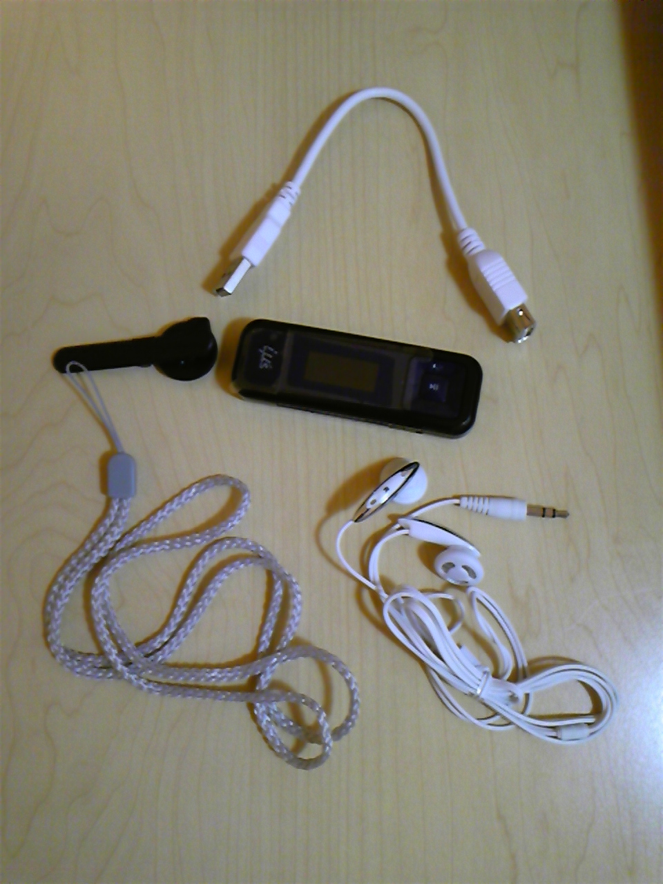 付属品は、イヤホン、ストラップ、脱着式のクリップ、USB延長ケーブル、取説など。