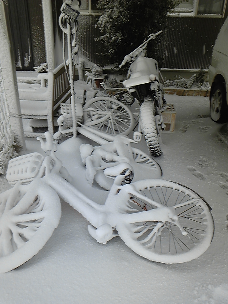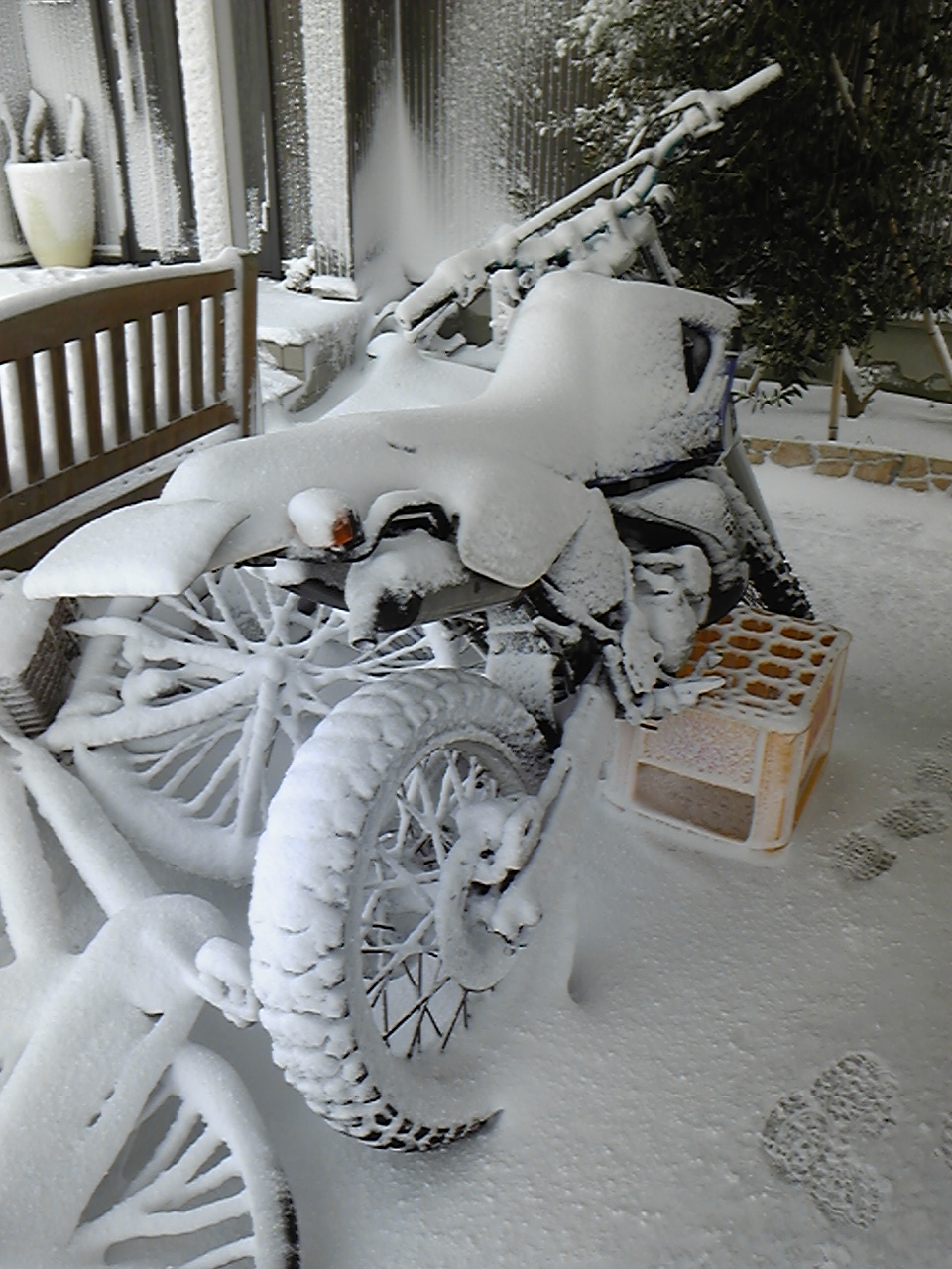 今日は風が強く、雷雨だったので雪が溶けたが、二輪に乗れる状態ではない。