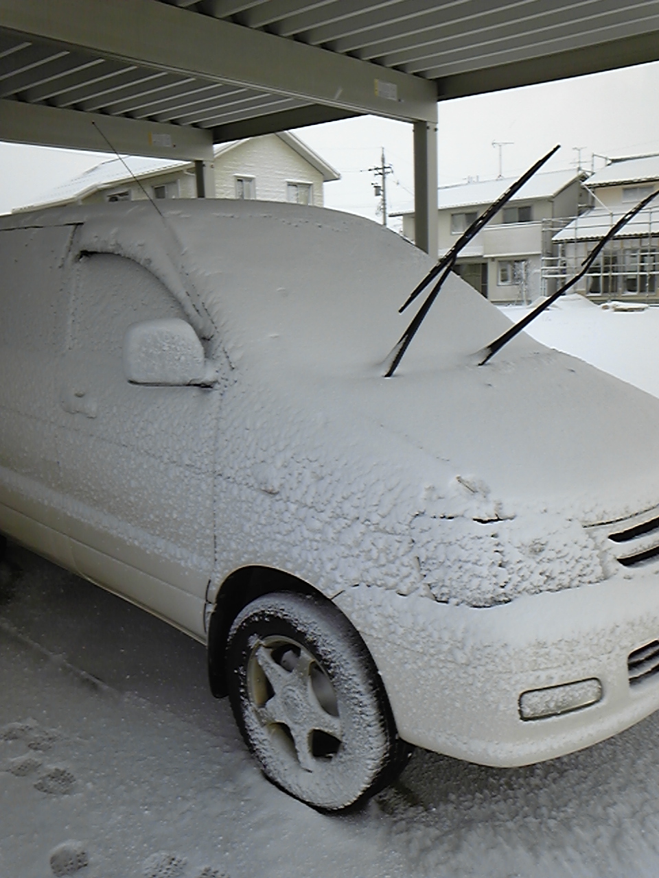 昨夜は道路に雪が無かったのだが、深夜から早朝にかけて降った様だ。
