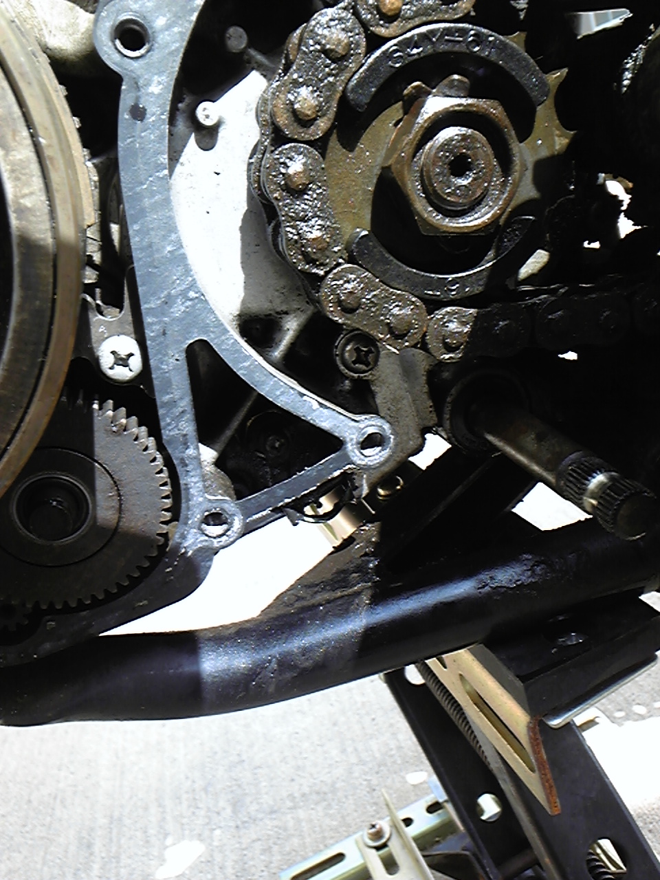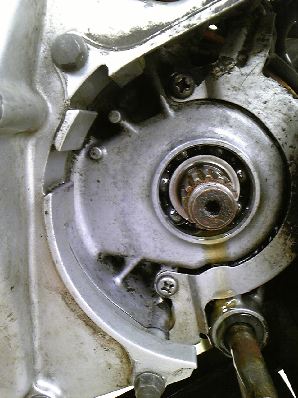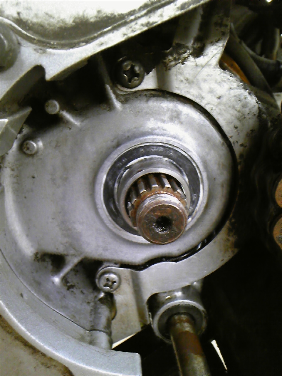 再発したオイル漏れ箇所を特定する為、怪しいドライブスプロケットを外してみると・・・