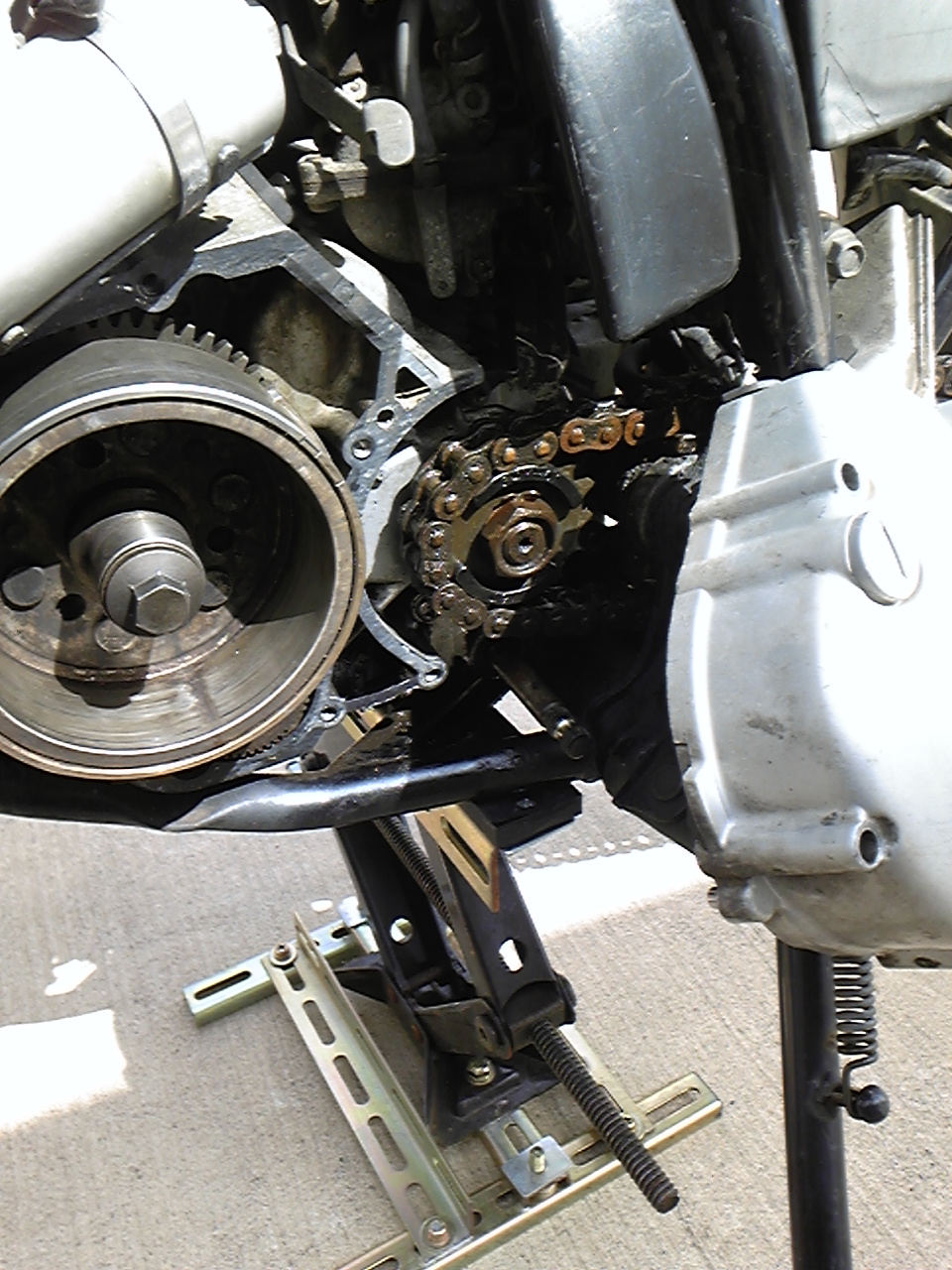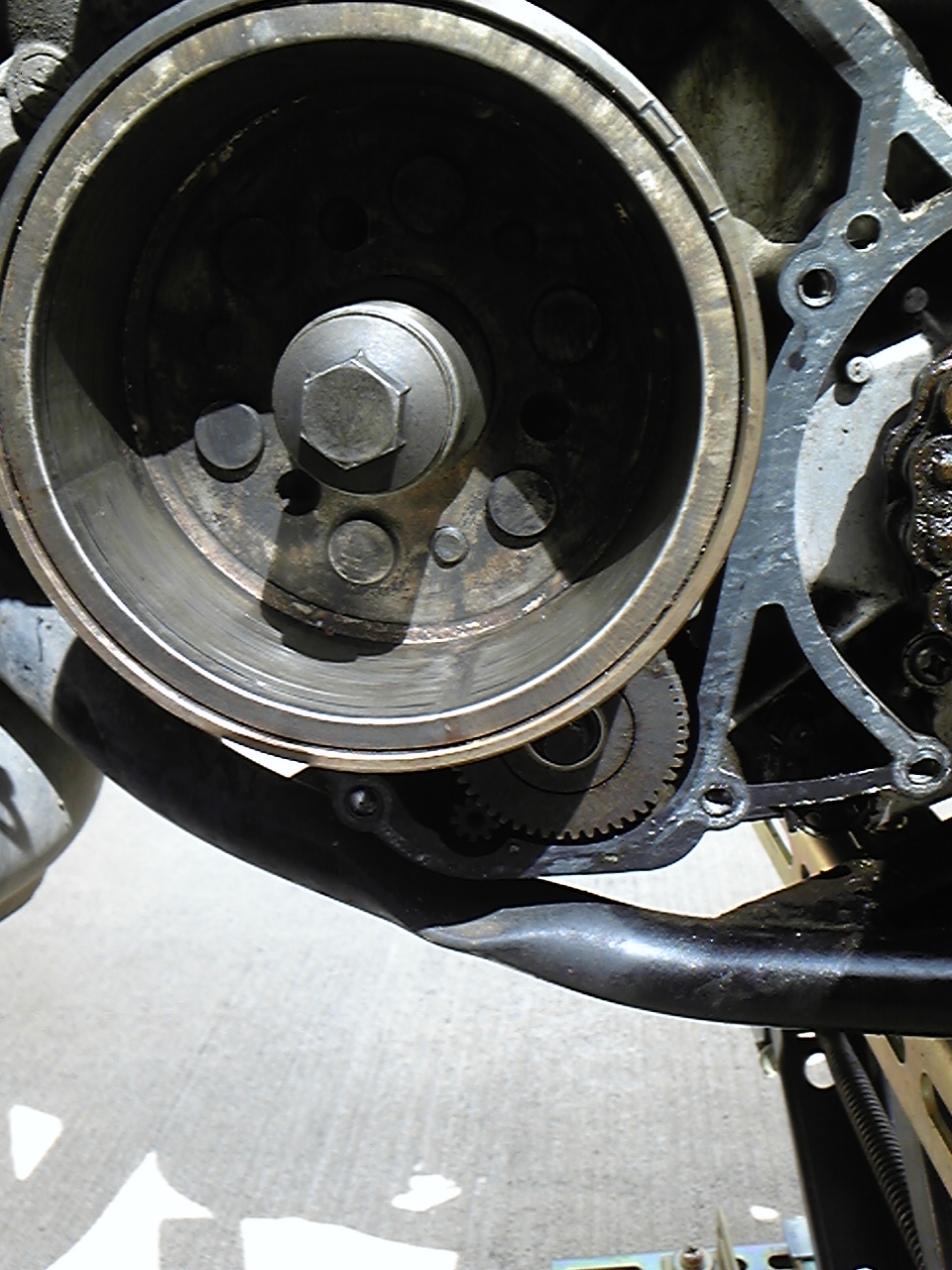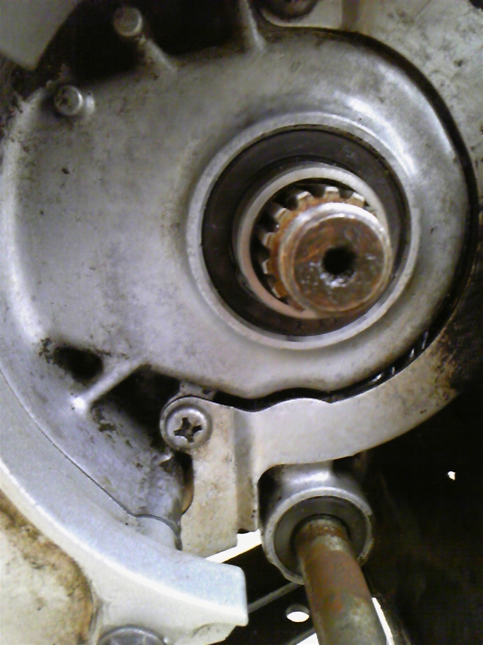 再発したオイル漏れ箇所を特定する為、怪しいドライブスプロケットを外してみると・・・