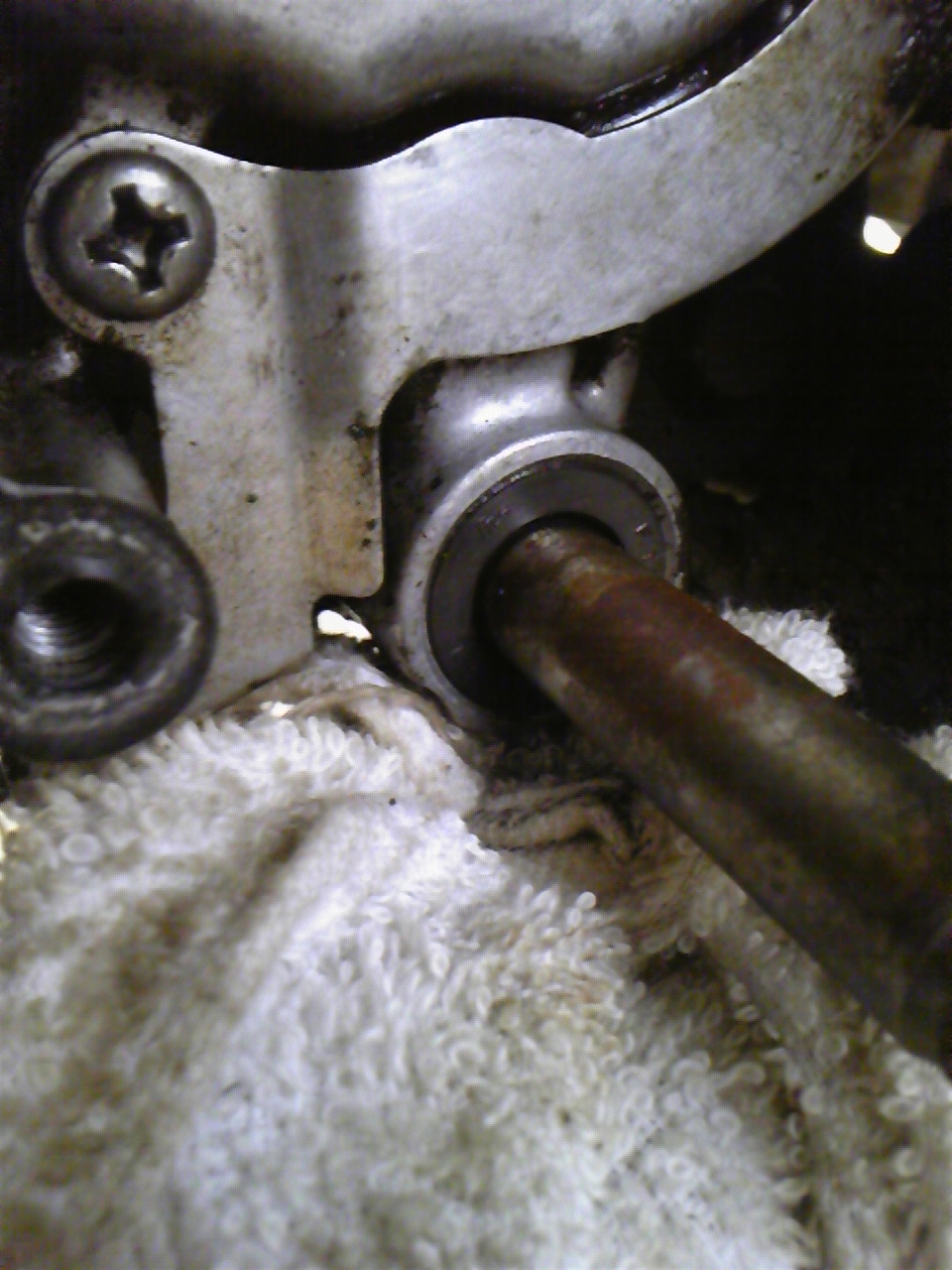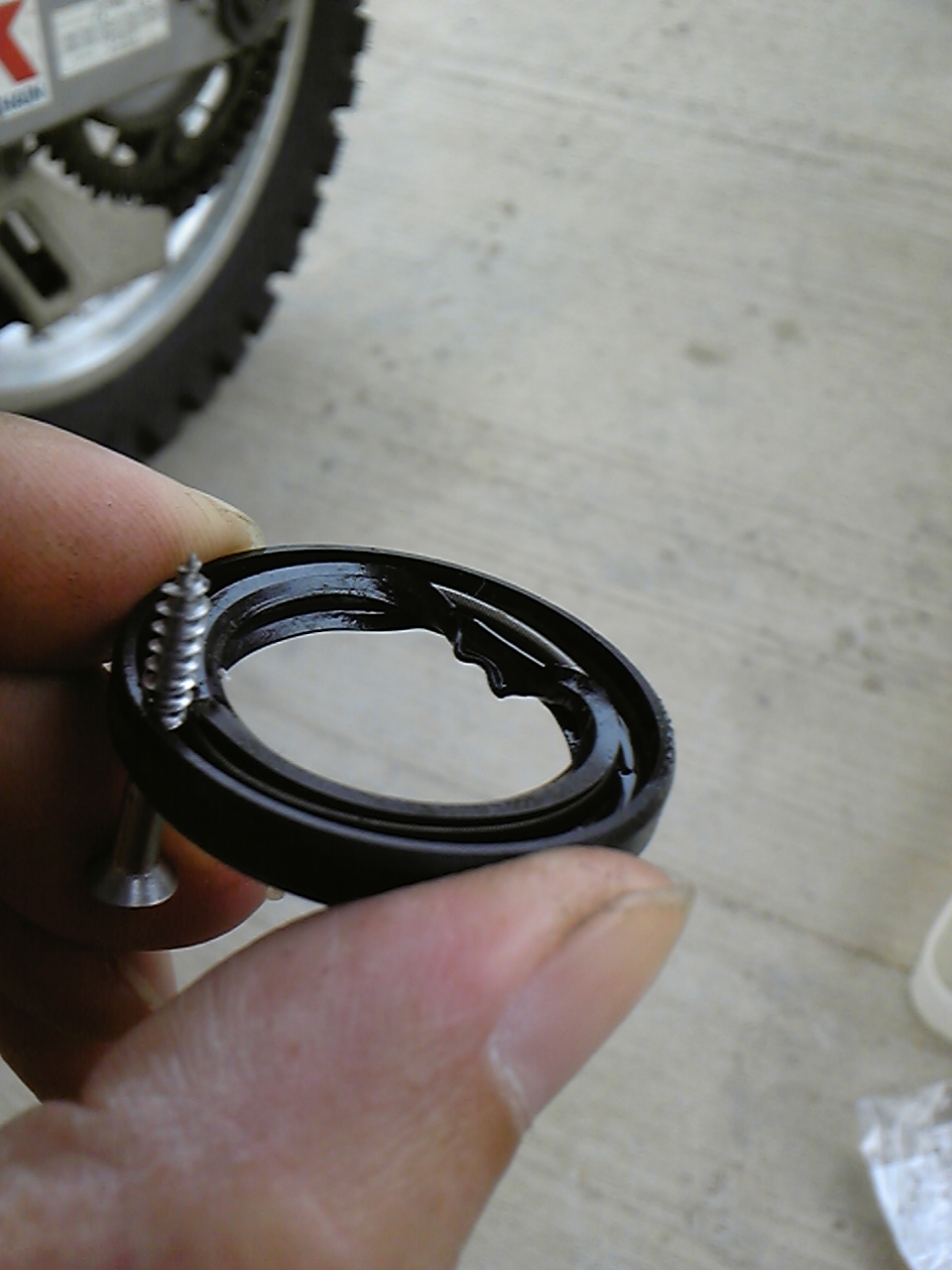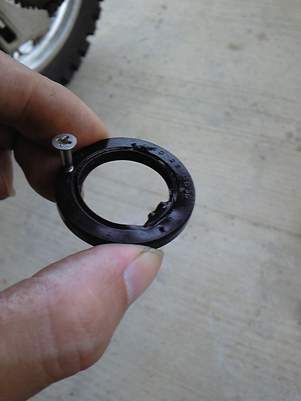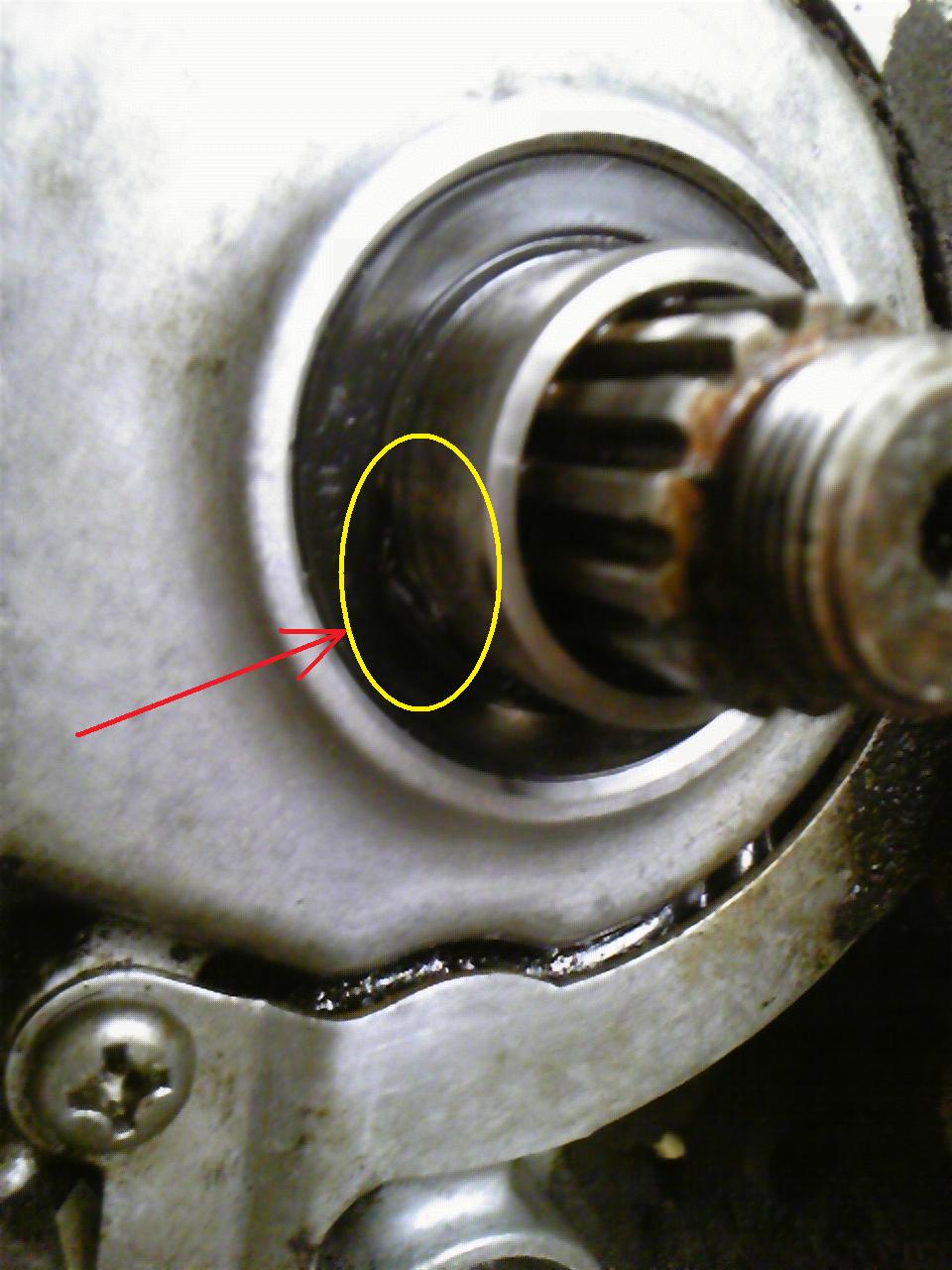 前回オイルシールを交換した際、シールを打ち込み過ぎていた為シールがかなり変形していた。