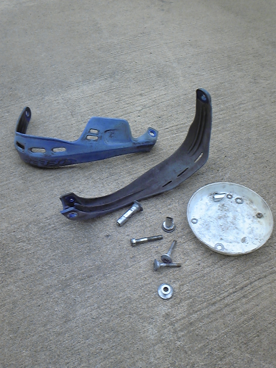 もともと青かったブッシュガードはすっかり色褪せ、オイルやら苔?カビ?で全体的に黒ずんでいた。