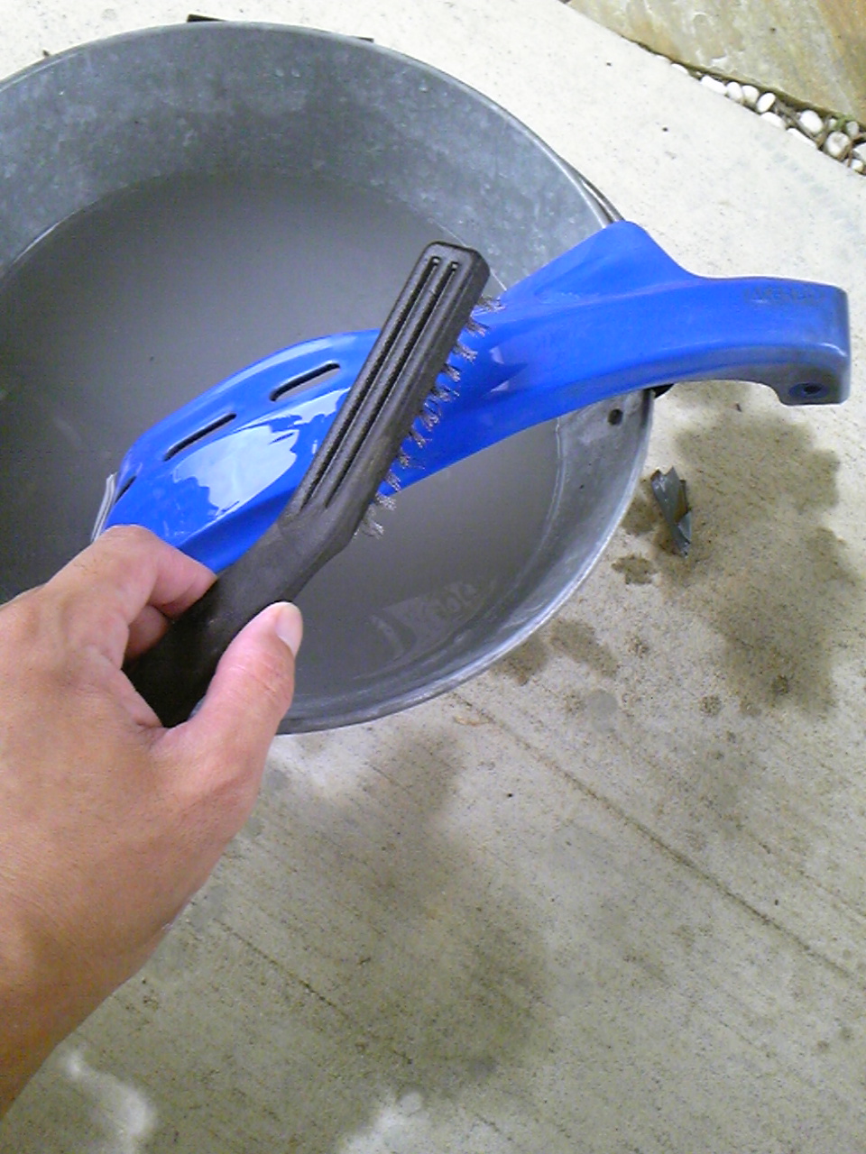 とりあえずワイヤブラシと耐水ペーパーで水洗いすると、意外にも良く落ちるので本気モードON!