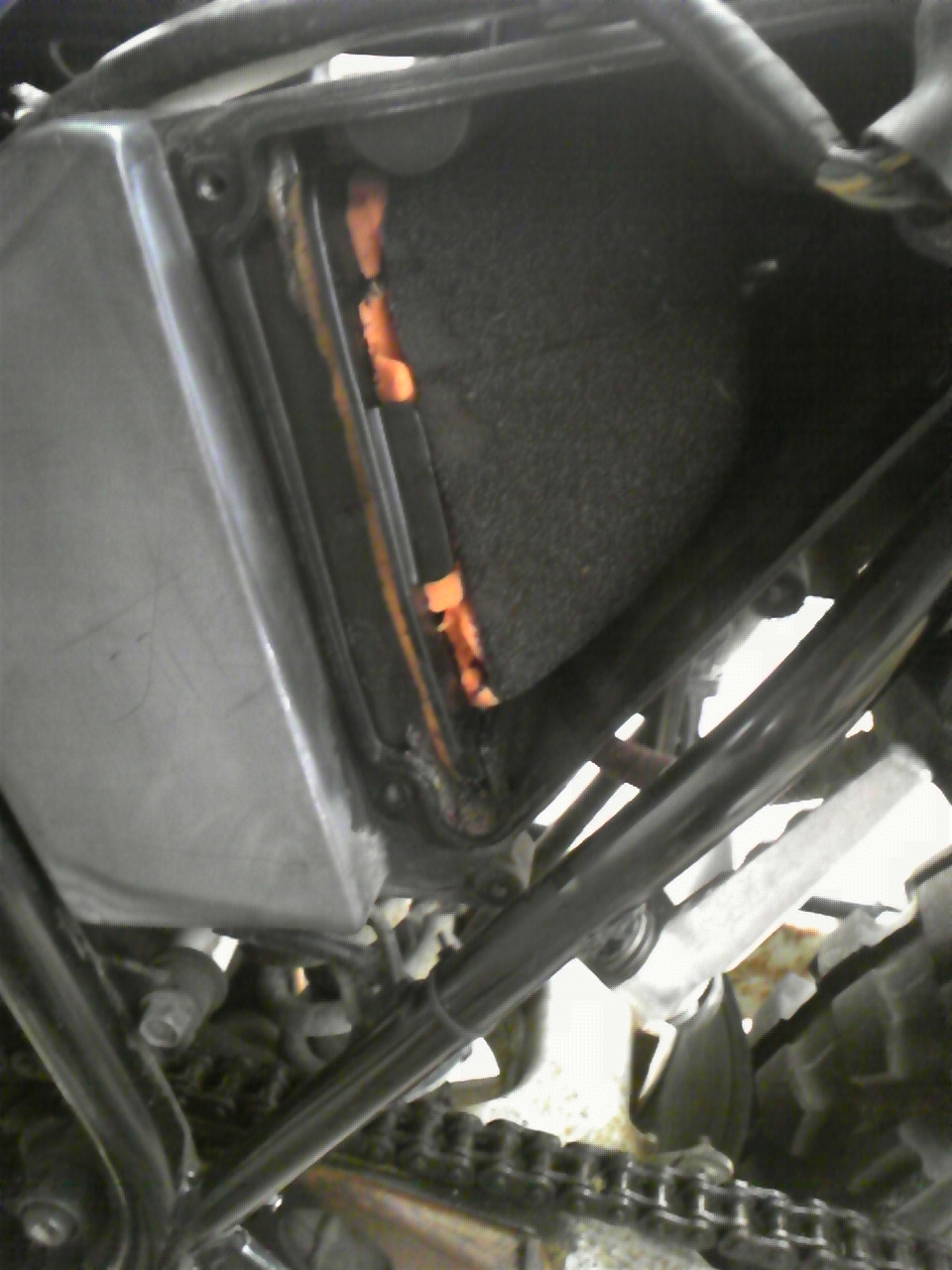 そして、左サイドカバーを外してエアクリーナーの確認。