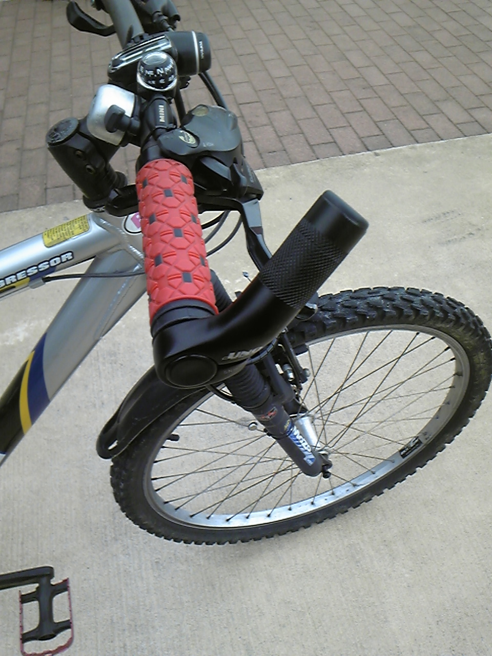 全体的にシックな色使いの車体なので、アクセントを付ける意味で赤いグリップにしてみた。