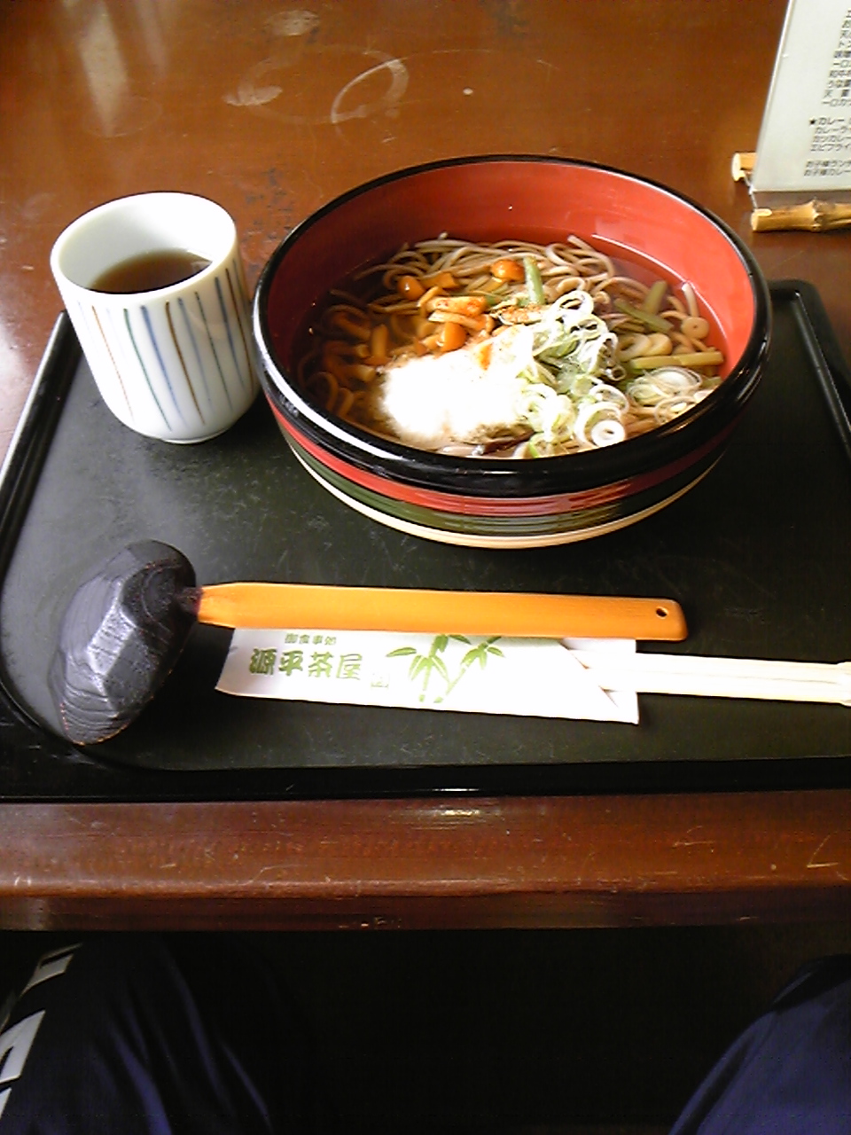 資料を一通り見終えて腹が減ったので、食事処で「源平山菜そば」を食べてみた。