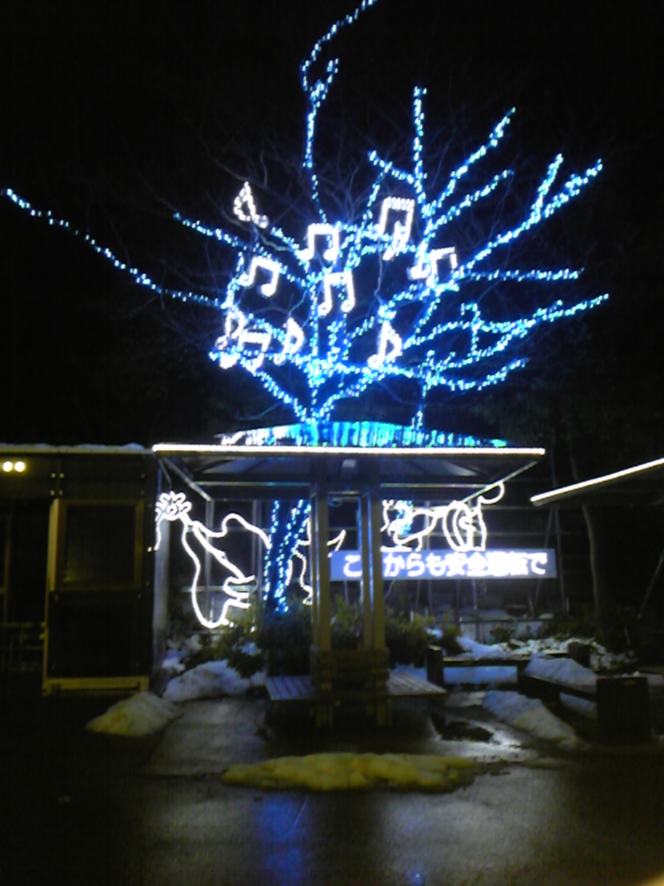 クリスマスシーズンらしく、高速のSAにもキレイなイルミネーションがあった。