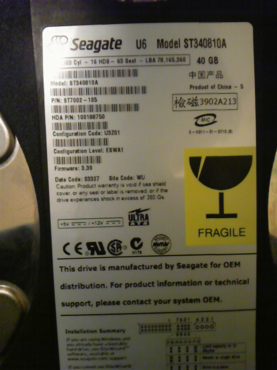 容量は同じ40GBだが、メーカーが違うし当然型式も違う・・・(^^;