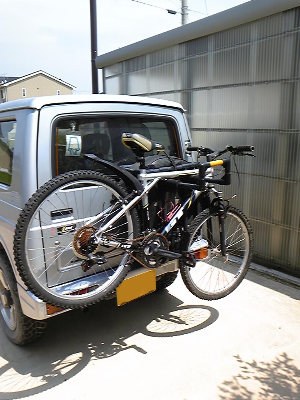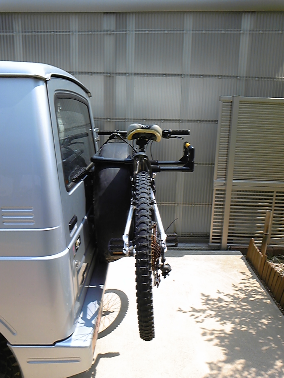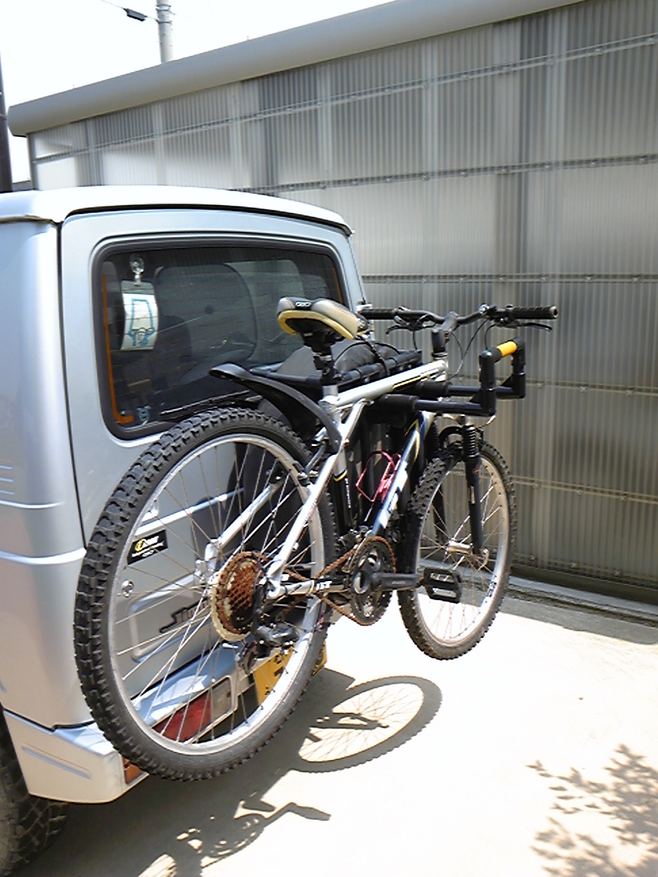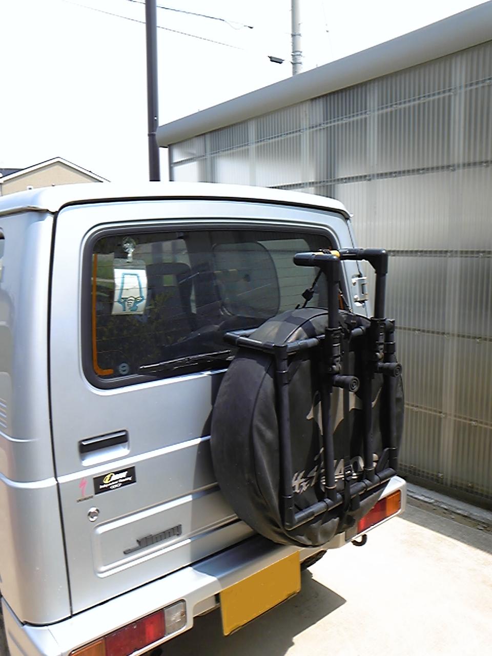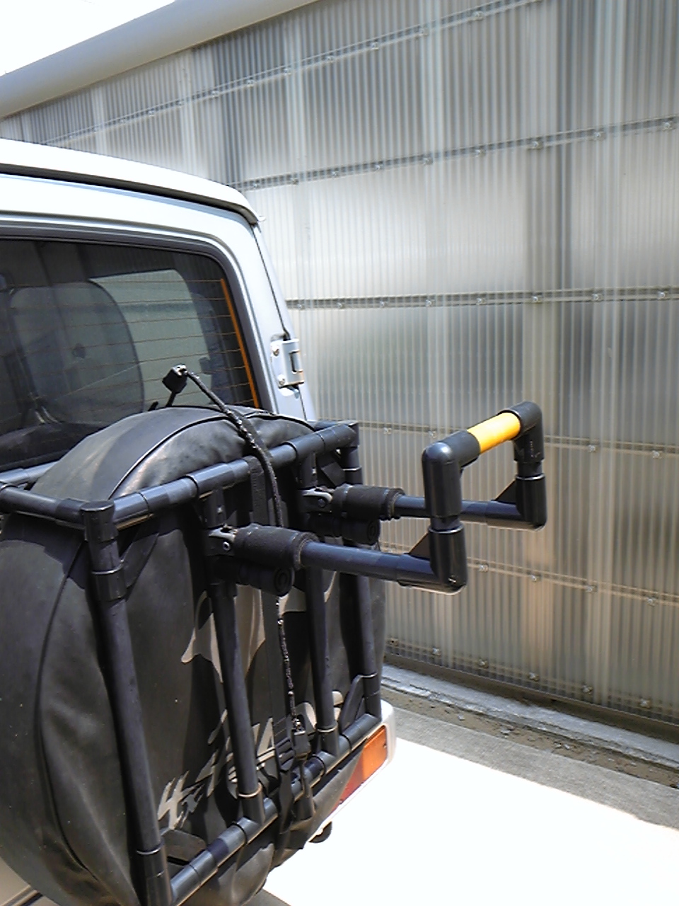 背面のスペアタイアに付けている自作ちゃりキャリア