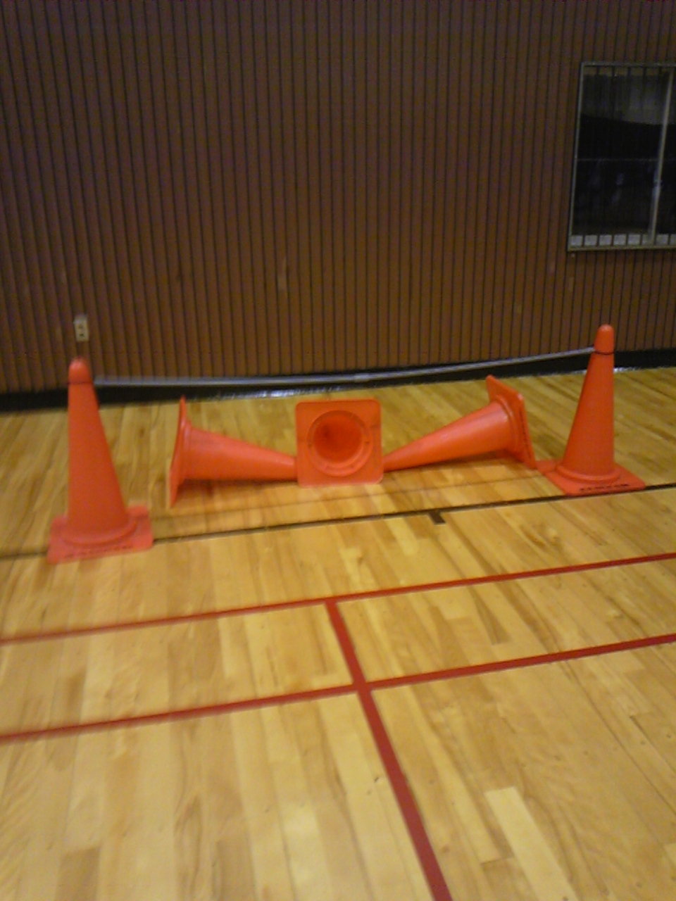 両端にコーンを立てて使う、いたって簡単なものだが十分使える。