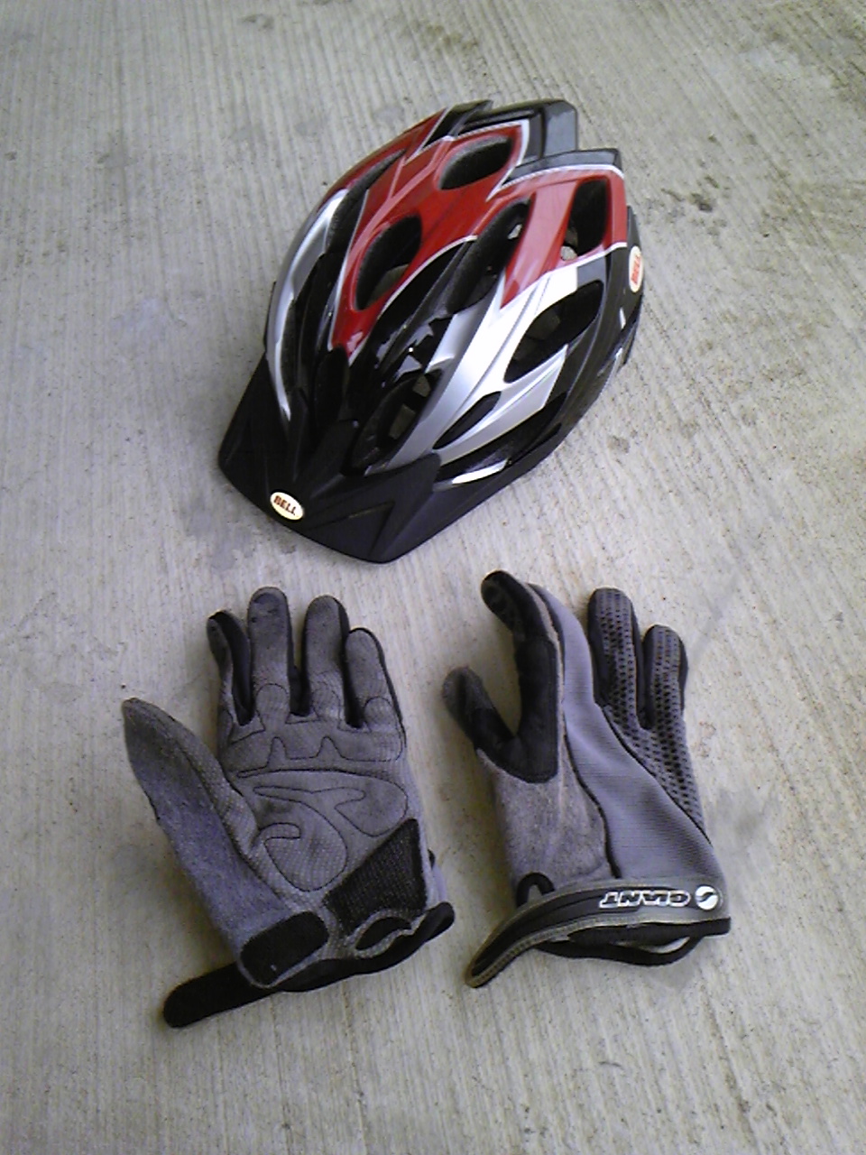 湿度が低くカラッとしていたので、物置にしまっておいたちゃり用のヘルメットとグローブを出した。