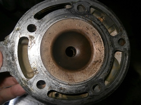 ピストンヘッドの表面はブラストしたみたいにざらざら。