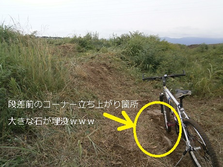 直線部分が極端に短いので、段差を越える為の十分な加速が得られないばかりか路面には丸い石が埋没している。